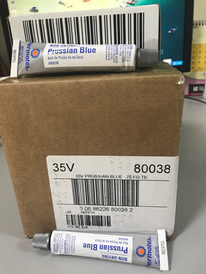 藍色、不干性;有助于機械加工表面的安裝,檢測機械零部件表面的精/確度??墒馆S承、氣門、齒輪等超出公差的零件勘定到位;不固化,易清除。